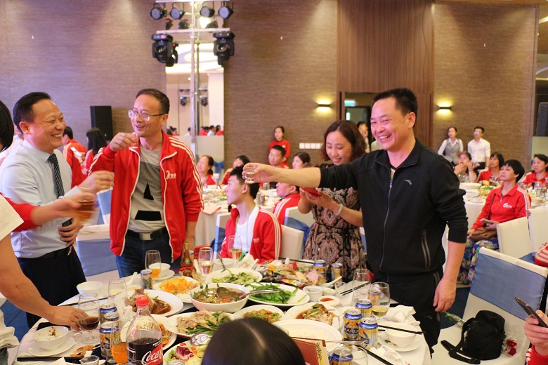 越南海關(guān)對(duì)旅客的行李物品檢查甚嚴(yán),很多物資無(wú)法順利入境,但我們年會(huì)現(xiàn)場(chǎng)的布置一點(diǎn)也不輸國(guó)內(nèi)氣派!